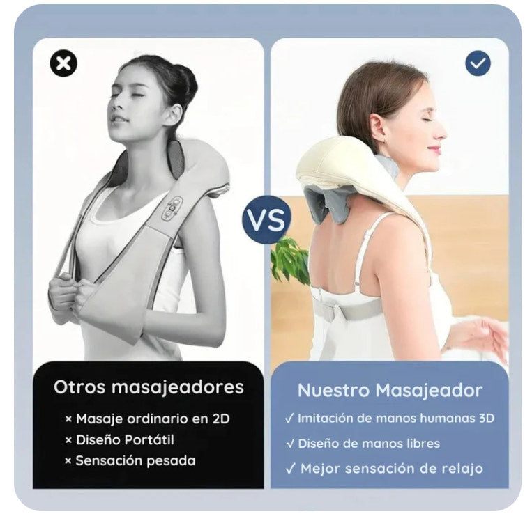 Este masajeador fue creado con la misma lógica de los masajes terapéuticos: presión precisa, movimiento circular y calor suave para una relajación muscular profunda. Si estás buscando comodidad, efectividad y practicidad, este es el producto ideal para ti.